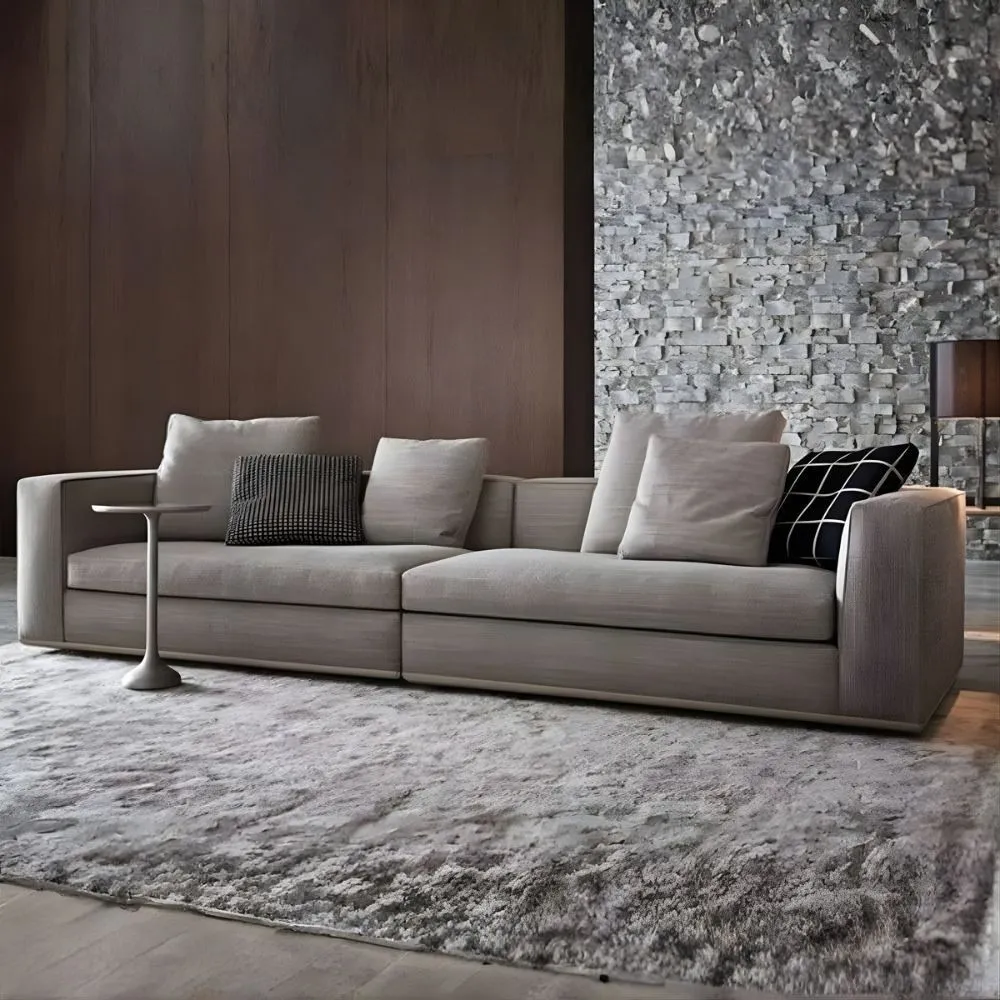 كنبة بتصميم عصري وخامة كتان ناعمة توفر تجربة جلوس مريحة وعملية لأي مساحة في المنزل.