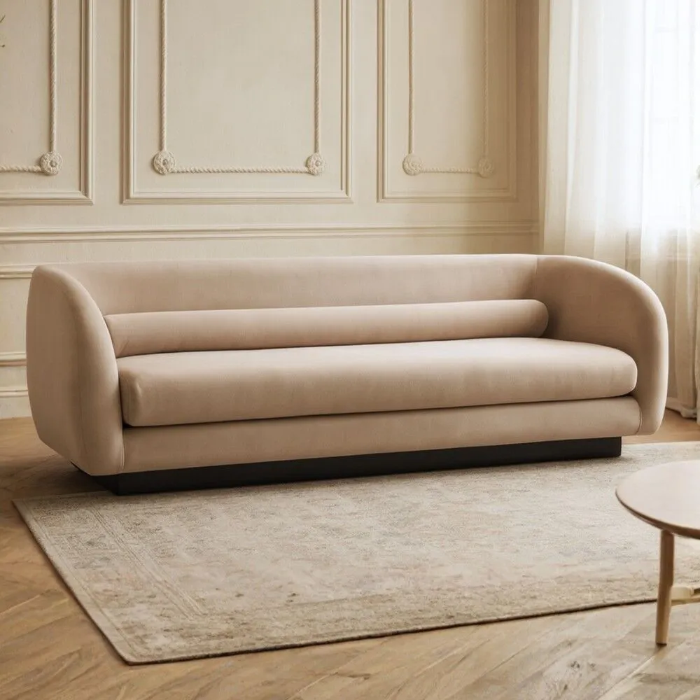 اللون البيج الجميل مع قماش المخمل يضفي لمسة من الفخامة على أي مساحة معيشة، مع تصميم مريح مع ظهر مريح للجلوس الطويل يوفر تجربة جلوس استثنائية.