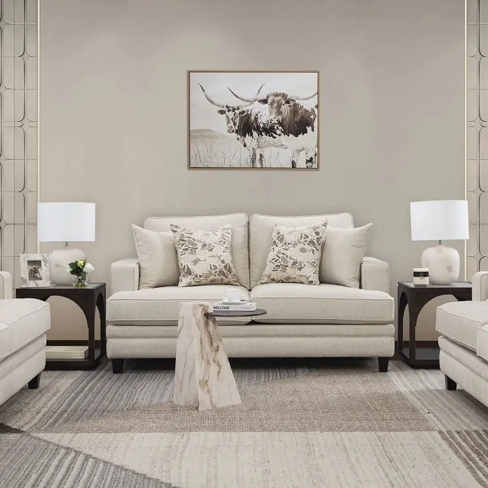 | يتضمن الطقم | كنبة مقعدين بأيدي 1 قطعة - وسادة مربعة للديكور 2 قطعة - وسادة مربعة للديكور 2 قطعة |