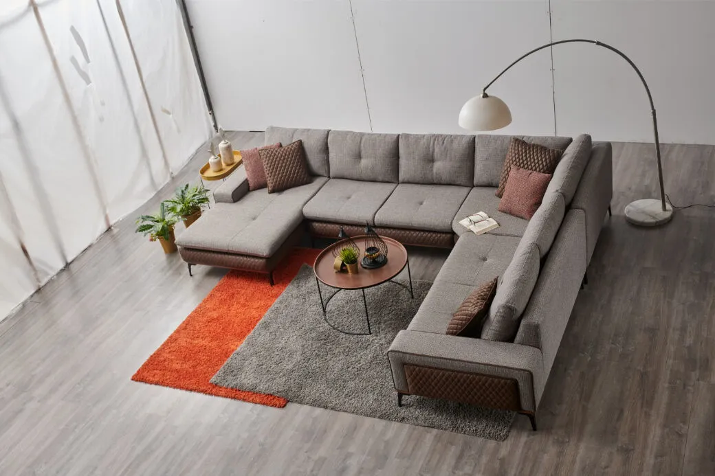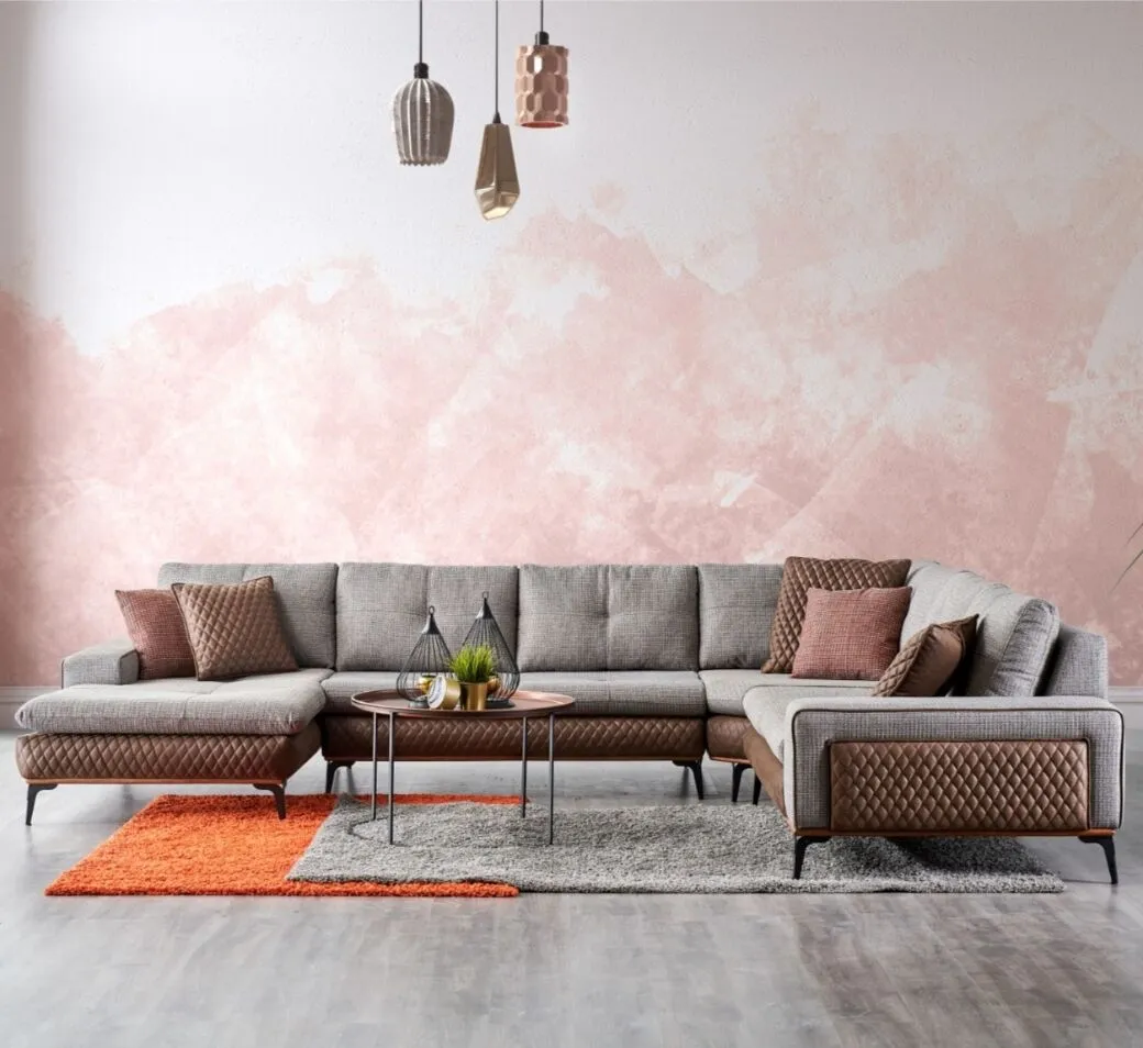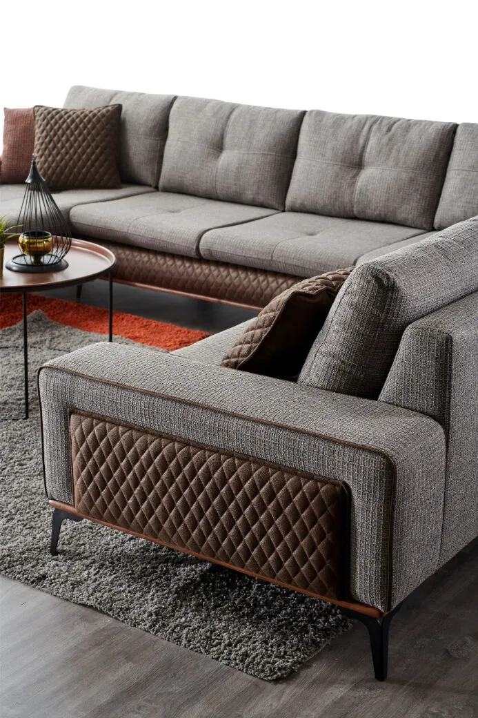 • اكتشف جوهر الراحة والأناقة مع كنب زاوية تشوكو بلون رمادي وبني أنيق وساحر، مع تفاصيل مميزة وخامات فاخرة تتحمل الاستخدام اليومي بكل سهولة.