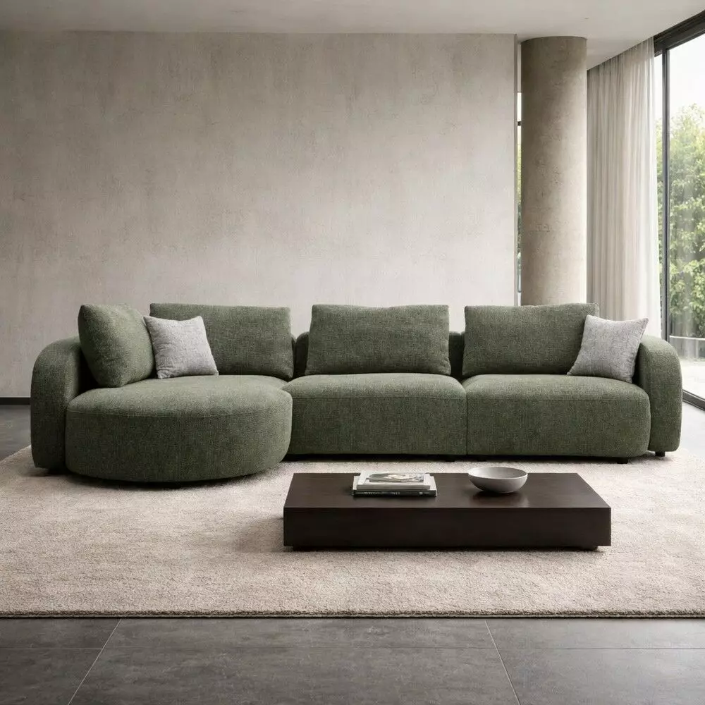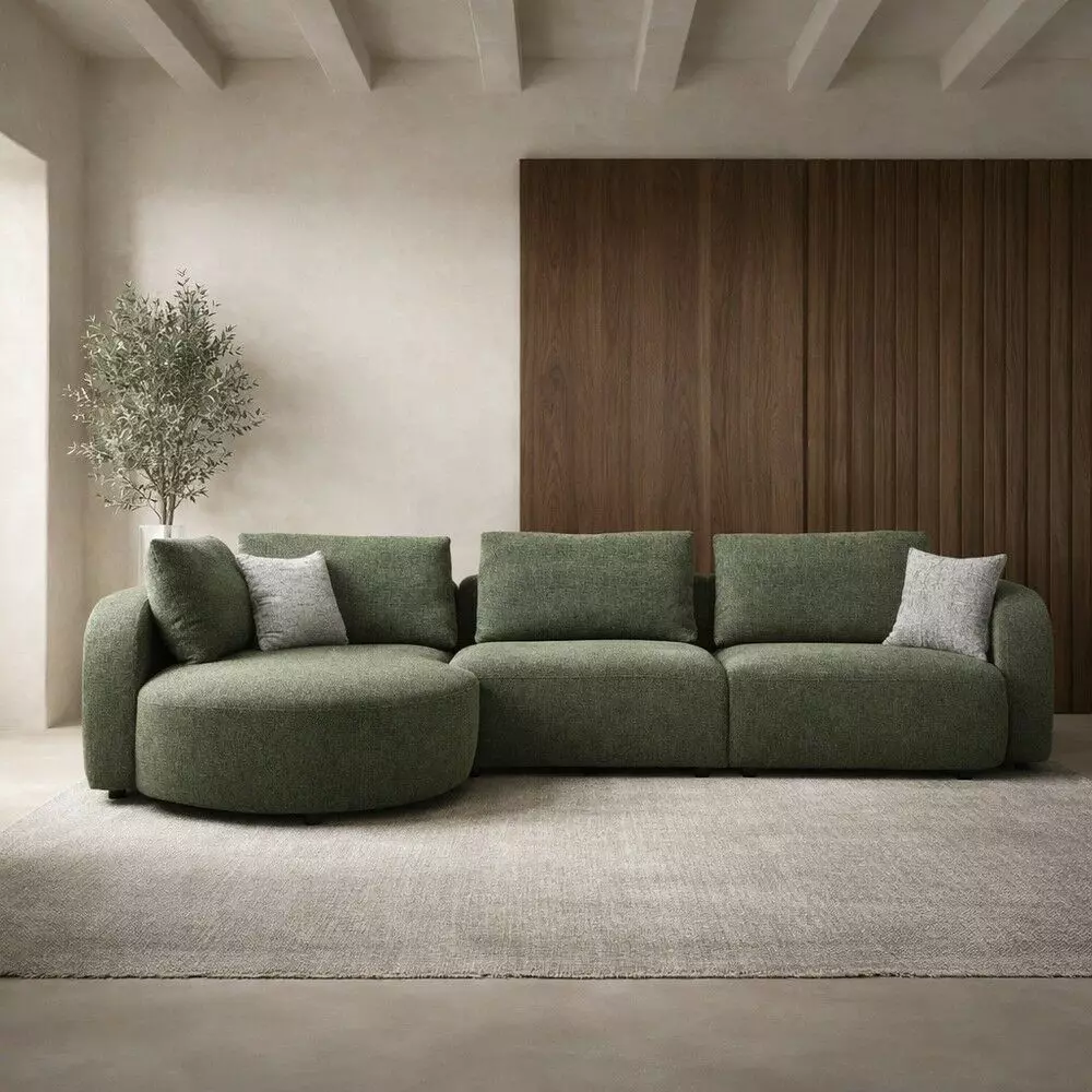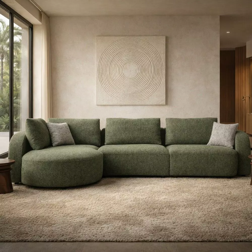 أخضر أنيق وهادئ، سهل التنسيق مع الألوان المحايدة والخشبية، ويضفي إحساسًا بالانتعاش والحيوية على غرفة المعيشة.التصميم: