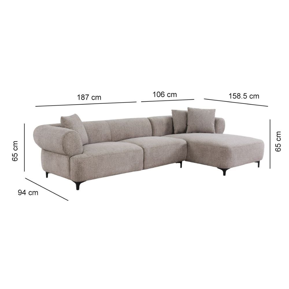 | أبعاد المنتج | ابعاد الكنبة الثلاثية العرض 187 - العمق 94 - الارتفاع 65 سم ابعاد اريكة الاسترخاء العرض 106 - العمق 158.5 - الارتفاع 65 سم ارتفاع الارجل 10 سم |