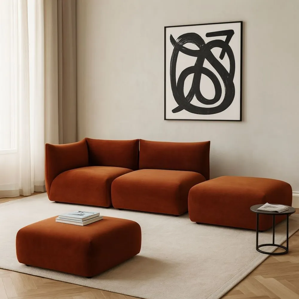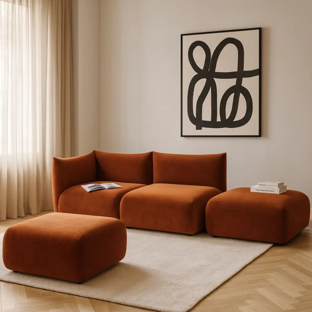 | يتضمن الطقم | كنب زاوية ثنائي ذراع يمين - 2 مقعد بدون ظهر وذراع |