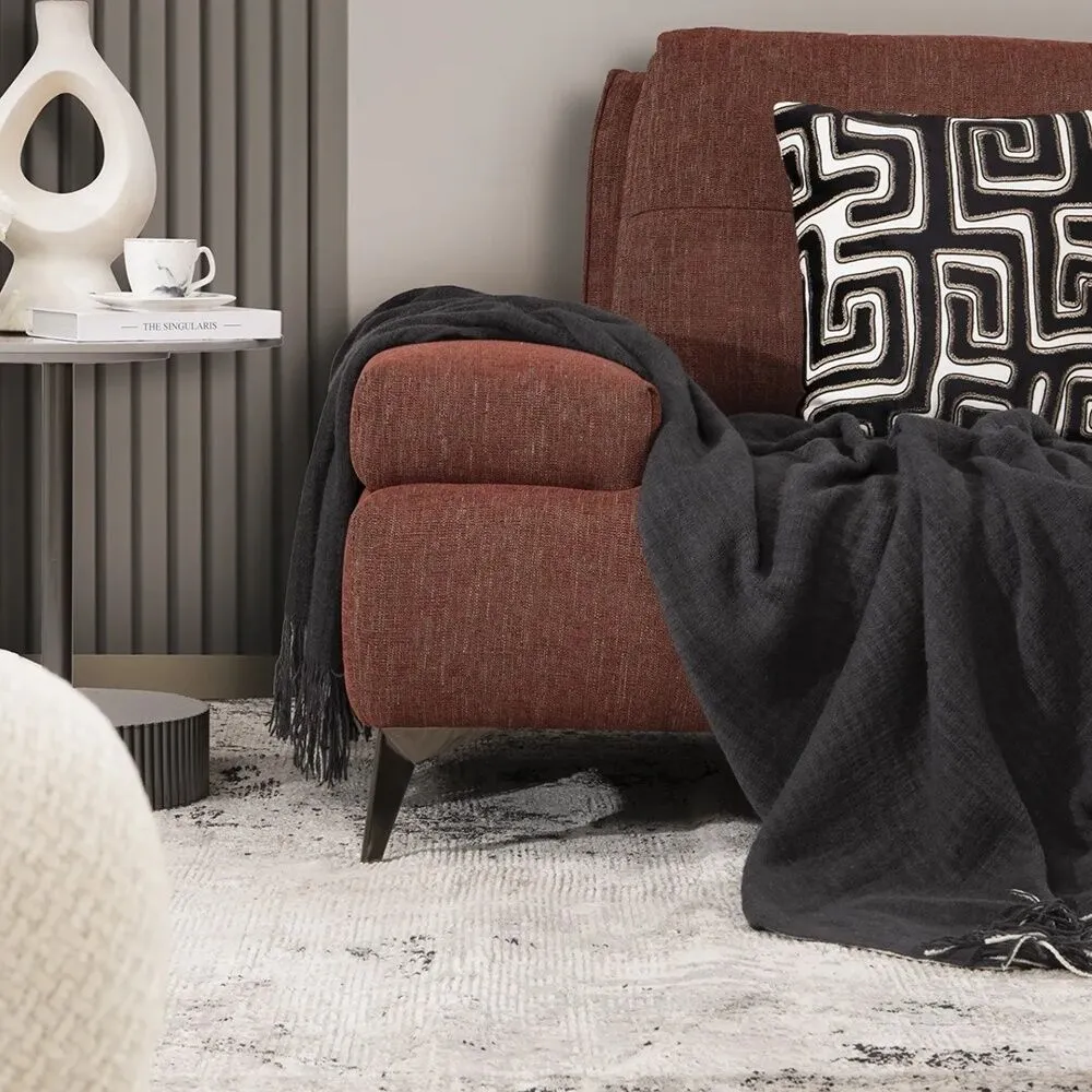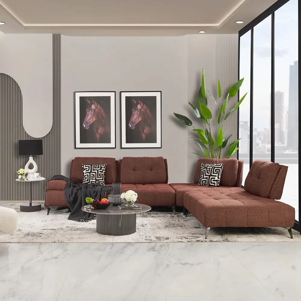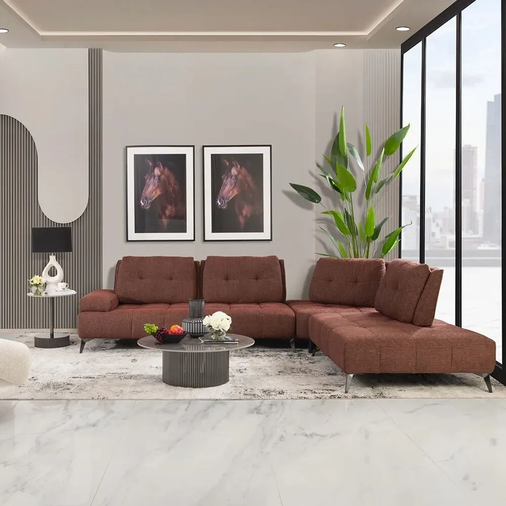هل تبحث عن قطعة مميزة تجمع بين الراحة واللمسة العصرية في مساحة معيشتك؟ هذا الكنب الزاوية الفاخر المكون من ثلاث قطع، والمصنوع من قماش الشنيل العنابي الغني، سيضفي لمسةً مميزة. تُضفي تفاصيل الأزرار المبطنة لمسةً من الرقي، بينما يضمن الإطار المتين المصنوع من البلاستيك والحديد أن يبقى هذا الجمال جزءًا من منزلك لسنوات قادمة. أبعادها السخية ووسائدها المريحة تدعوك للانغماس فيها لفترة طويلة. خطوطها الأنيقة وتصميمها العصري يتناغمان بسلاسة مع أي نمط ديكور، من البسيط إلى الانتقائي.