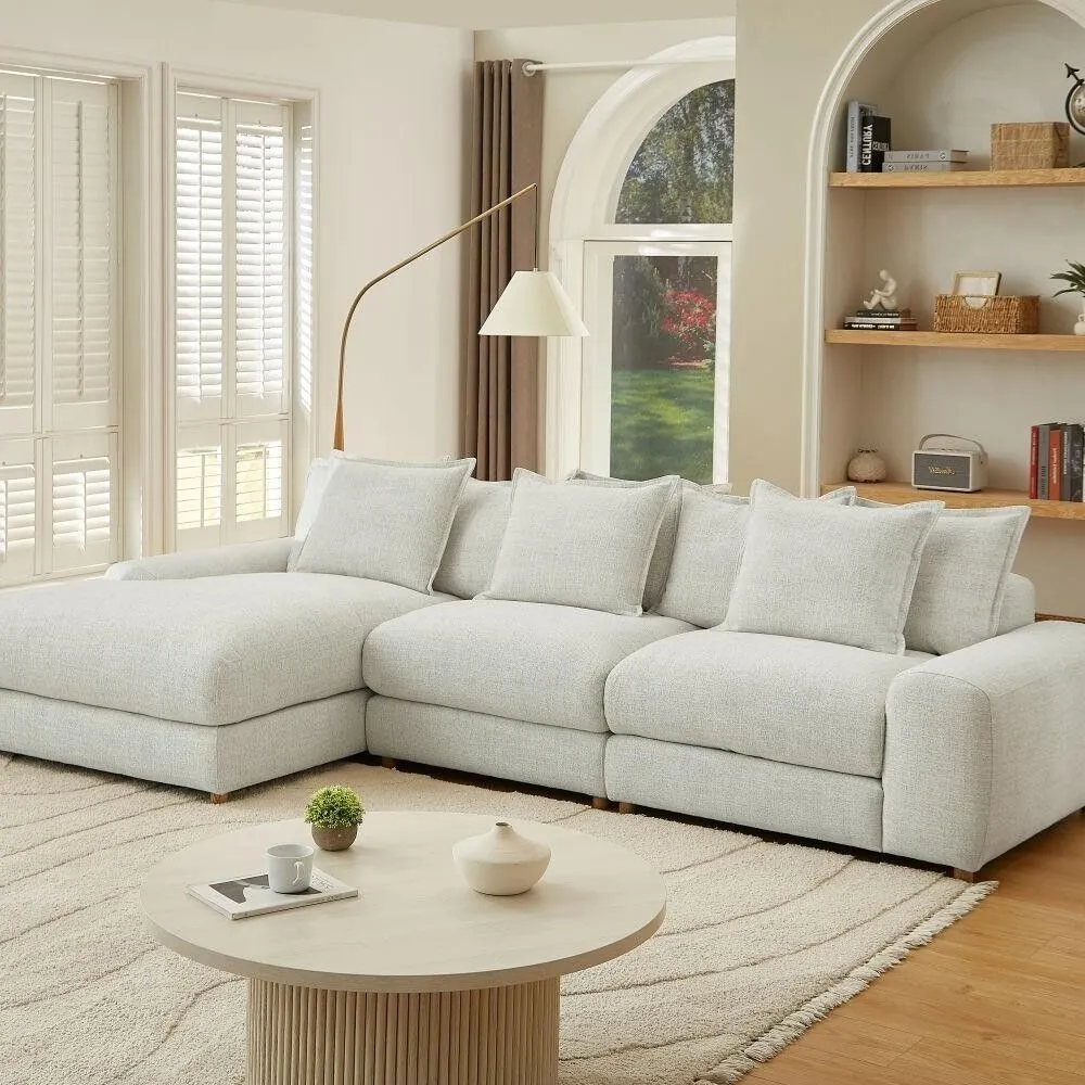 أضف لمسة من الراحة والفخامة إلى غرفة المعيشة مع كنبة الزاوية هذه المصممة بعناية لتجمع بين البساطة والعصرية. تأتي بلمسة ناعمة وزوايا منحنية تضفي مظهرًا دافئًا ومريحًا، وتمنح الغرفة طابعًا هادئًا وانسيابيًا.
