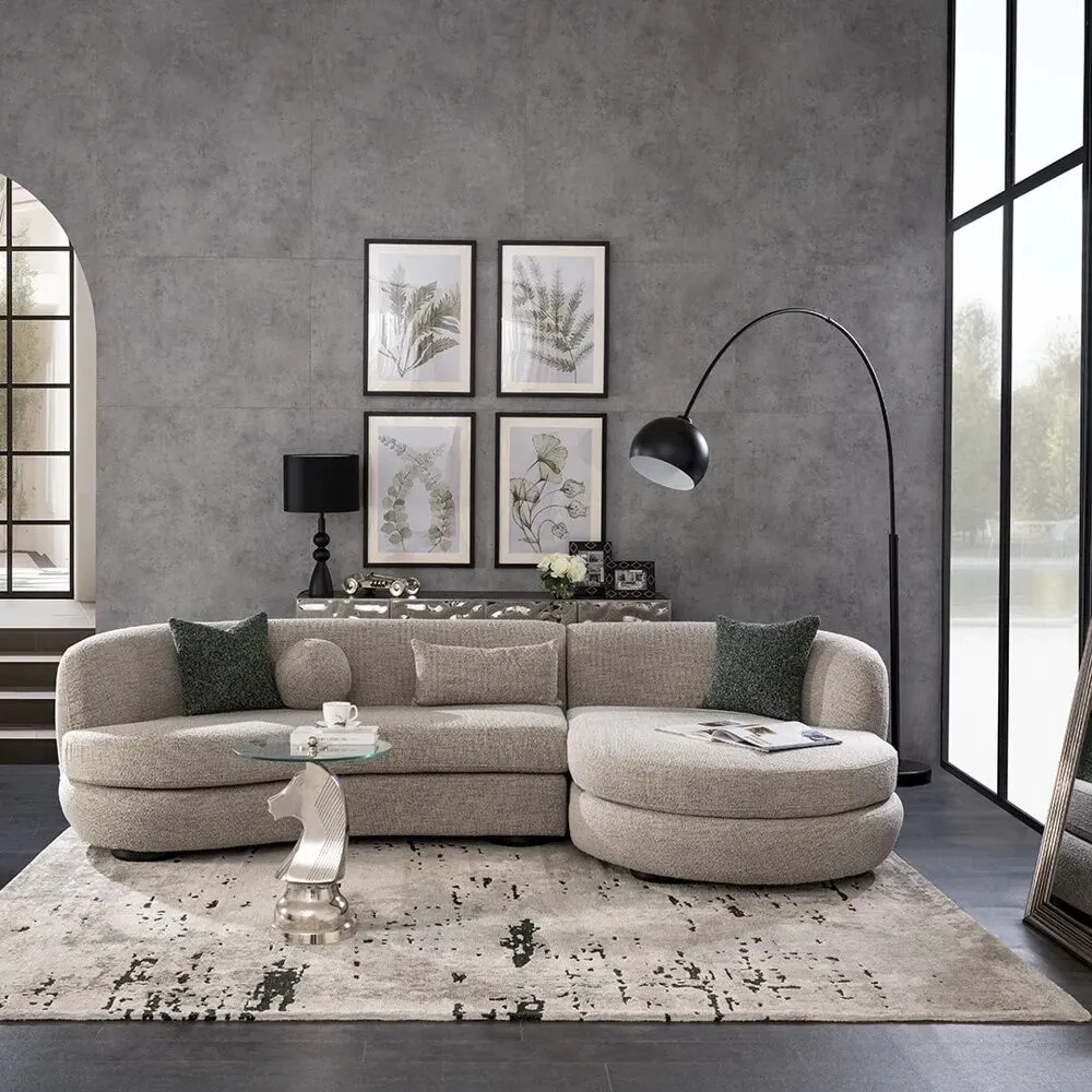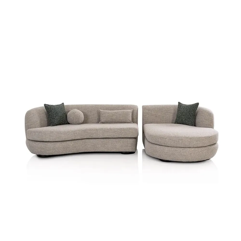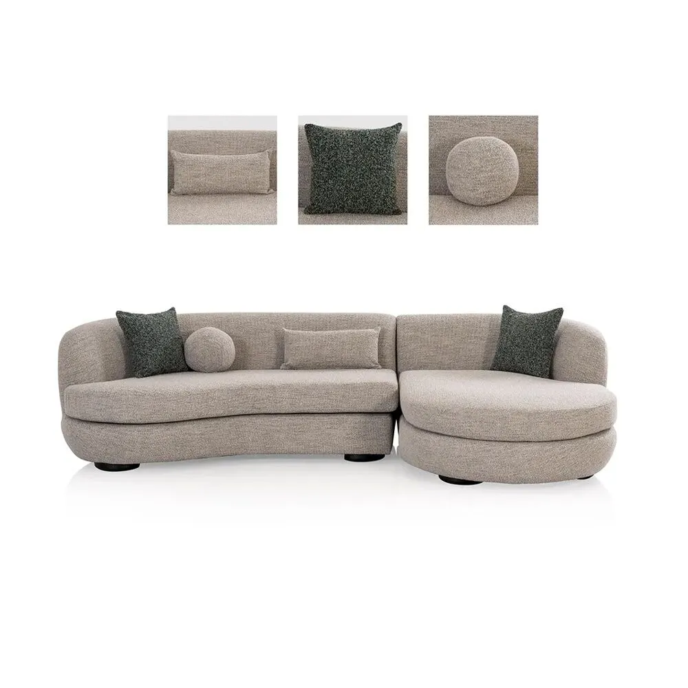 | يتضمن الطقم | كنبة مقعدين يد يسار 1 قطعة - أريكة استرخاء 1 قطعة - وسادة مربعة للديكور 2 قطعة - وسادة مستطيلة للديكور 1 قطعة - وسادة دائرية للديكور 1 قطعة |