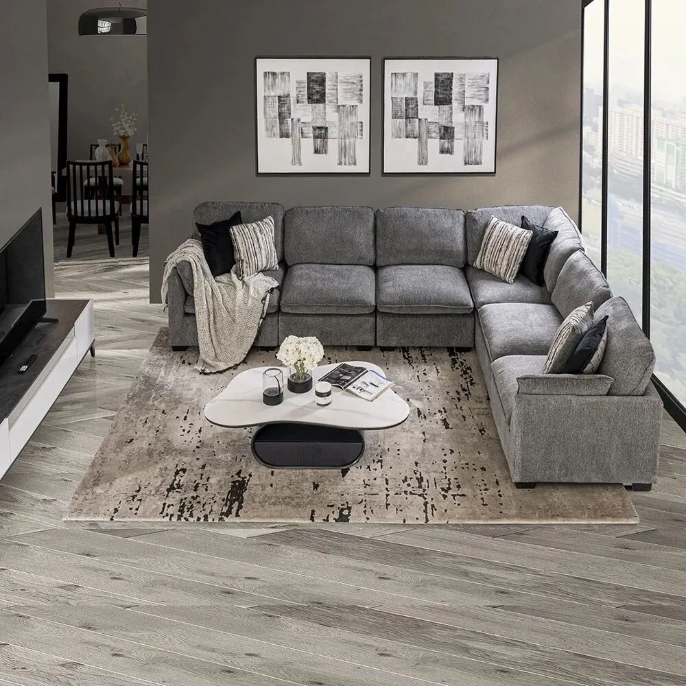 كنب زاوية 6 قطع ساجا - رمادي
