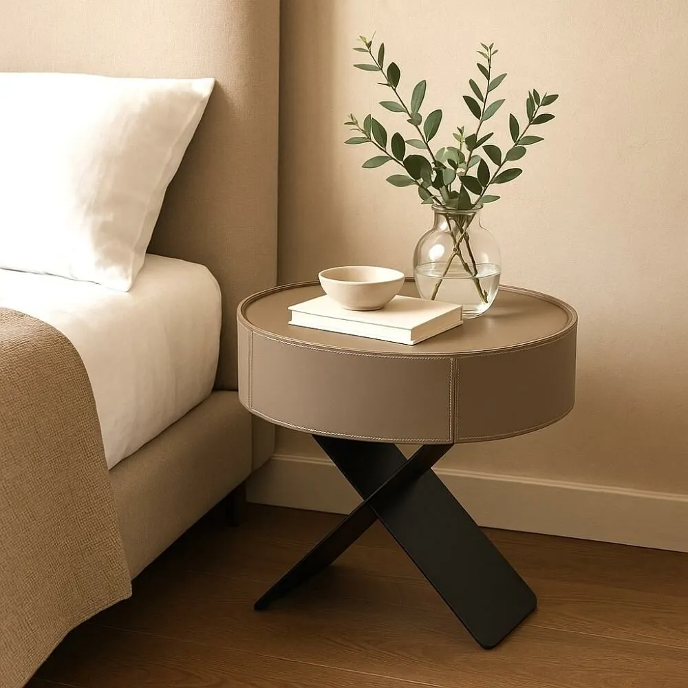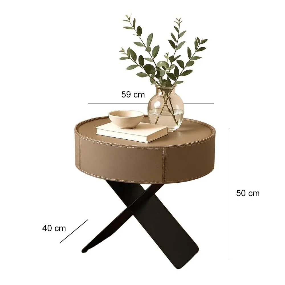 مصنوع بدقة من خامات عالية الجودة، مع تشطيبات ناعمة ولمسات عصرية تدمج بين العملية والجمال. يتميز بتصميم أنيق بسطح دائري مثالي لوضع مصباح أنيق، إطار صور، أو حتى كتابك المفضل بجانب السرير. مع درج بسعة تخزين مثالية لحاجياتك اليومية.