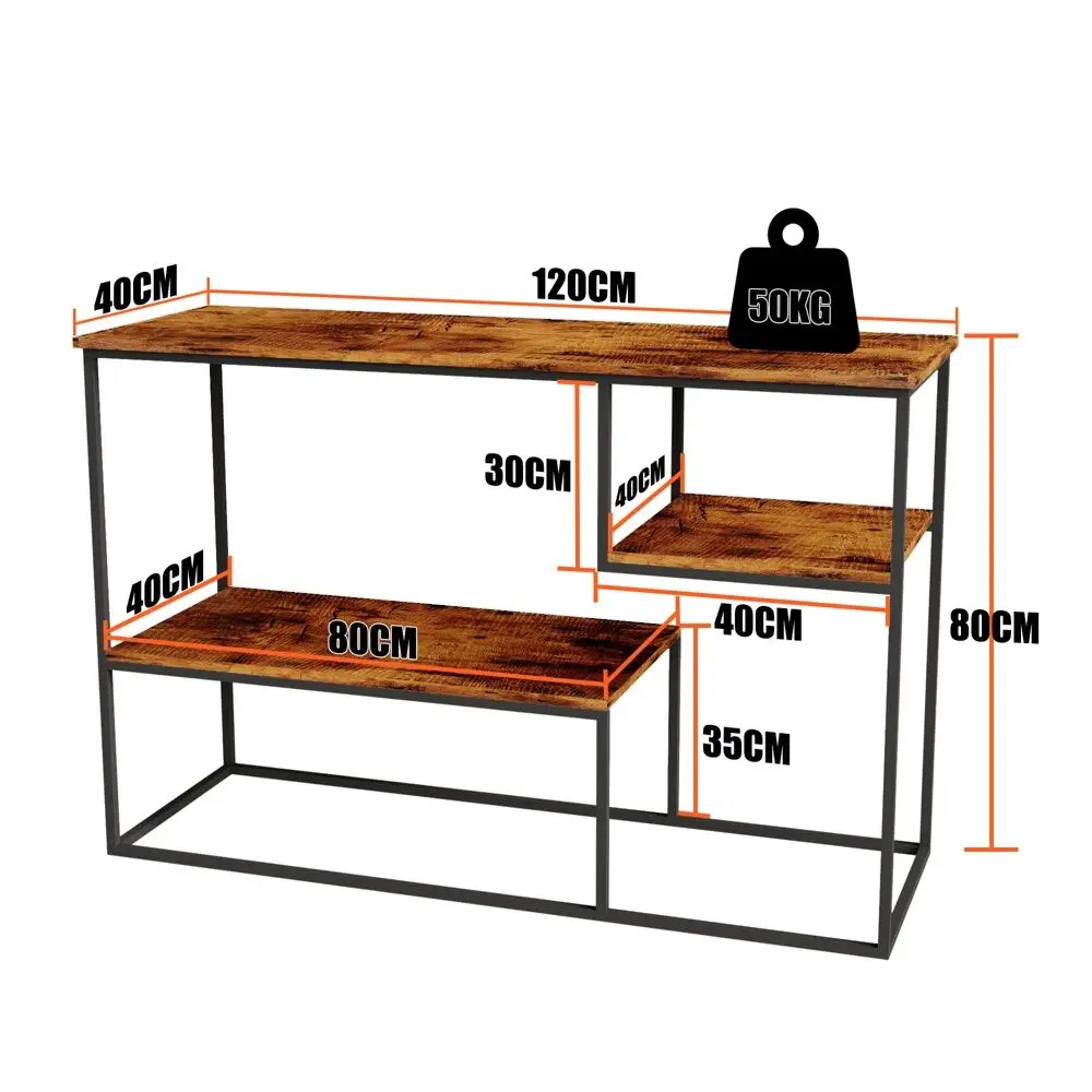 سطح الطاولة والأرفف الخشبية مصنوعة من خشب MDF عالي الجودة، مما يضمن استخدامًا طويل الأمد.