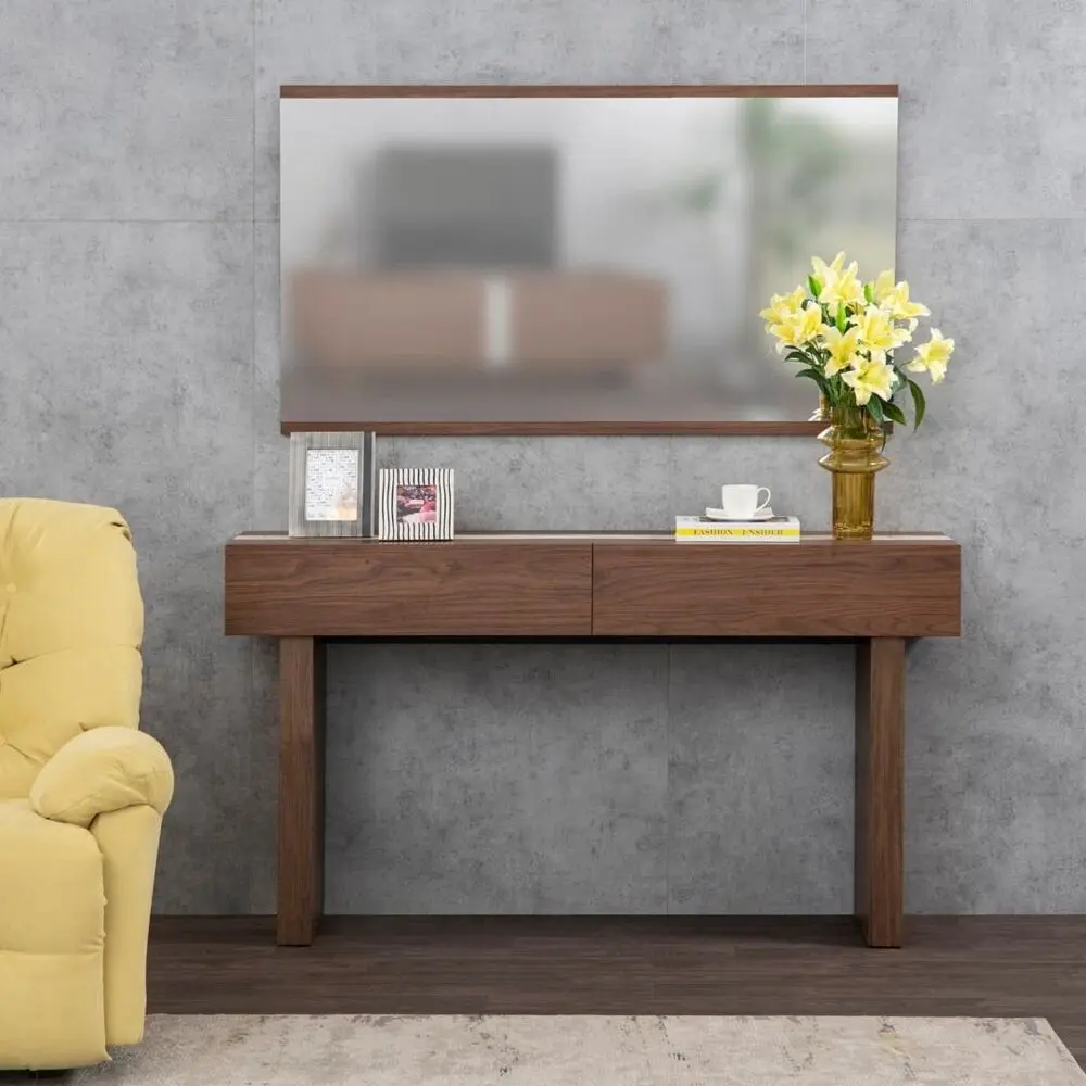 استعرض ديكوراتك وقطعك الفنية وضع مزهرية أو بعض صور العائلة على هذا الكونسول الأنيق والمتين. إضافة مثالية لغرفة المعيشة أو في مدخل المنزل. يأتي معه مرآه حائط مستطيلة لتكتمل الإطلالة المثالية.