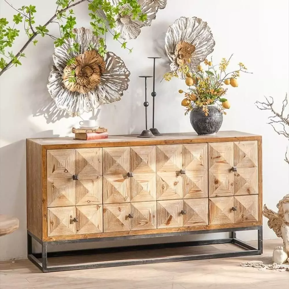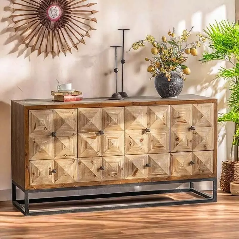 كونسول يدوي رانال هو قطعة ديكور فريدة تمزج بين الأناقة العملية والطابع الريفي العصري، مصممة لتكمل أي منزل بنمط بوهو. يجمع هذا البوفيه بين الخشب الطبيعي والحديد المصنوع يدويًا بطريقة معقدة، مما يضفي دفء وفخامة على المساحة. يتميز بهيكل قوي وأبواب خشبية يدوياً تضيف طبقات من التفاصيل المبهرة، مع أرجل مبطنة تحمي الأرضيات وتوفر ثباتًا ممتازًا. توفر الخزانة مساحة واسعة للتخزين، لتكون مثالية لغرفة المعيشة، غرفة النوم، أو المطبخ، وتضفي لمسة طبيعية أنيقة تعزز جمالية أي زاوية في المنزل.