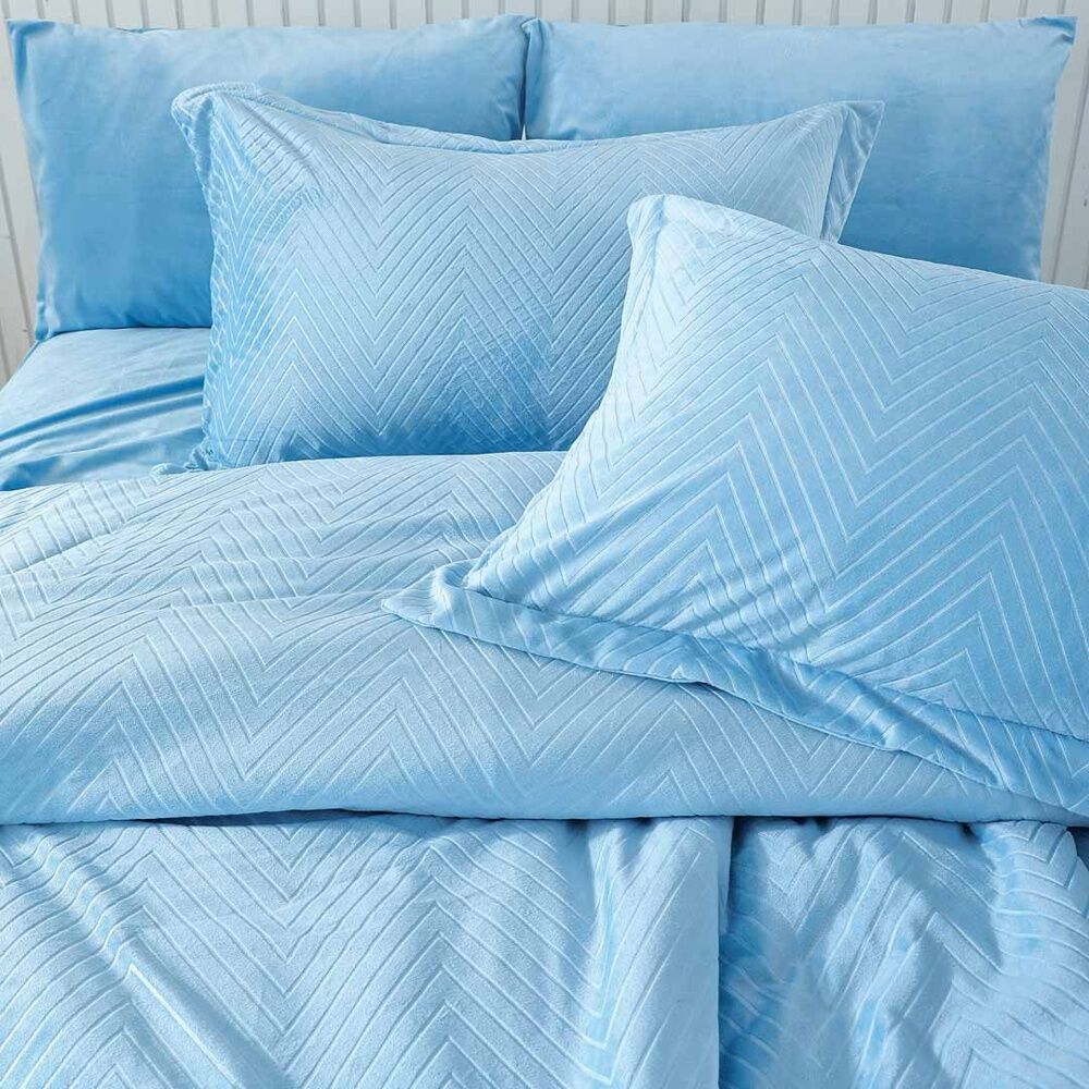 لحاف مزدوج شتوي مخمل تولا - 6 قطع - سماوي