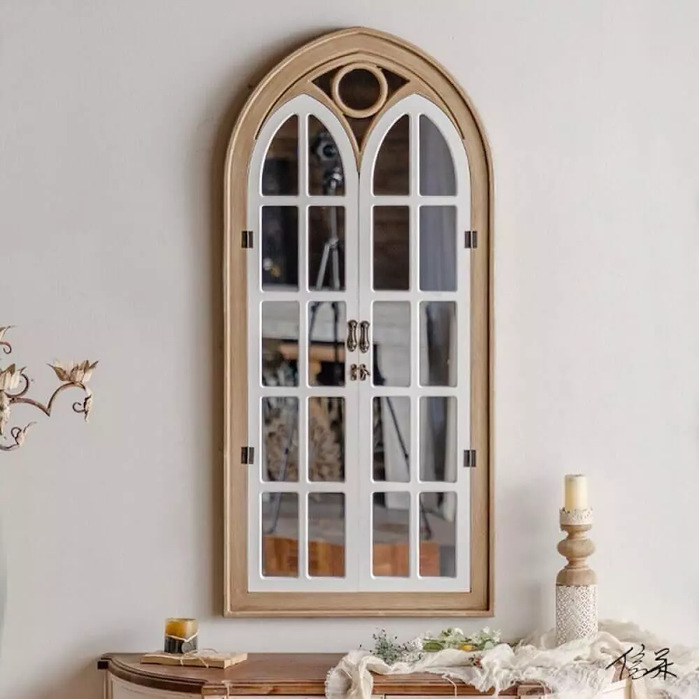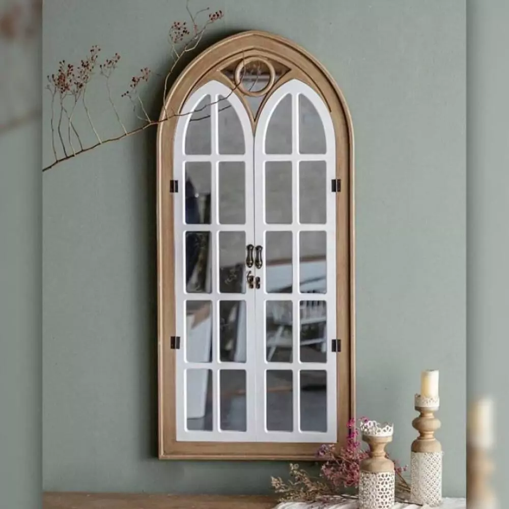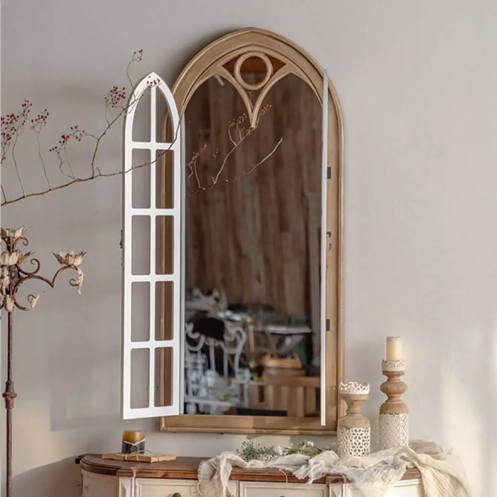 مرآة جدارية نافذة رييف تضفي لمسة فريدة من الجمال الريفي الكلاسيكي على أي مساحة داخلية، بإطار خشبي طبيعي عالي الجودة وتصميم شباكي يعكس الأصالة والبساطة. توفر هذه المرآة إحساسًا بالدفء وتساعد على تعزيز الإضاءة الطبيعية وتوسيع الإحساس بالمساحة، ما يجعلها مثالية للمداخل، الممرات، وغرف المعيشة، كما تتناغم بسهولة مع مختلف أنماط الديكور الداخلي