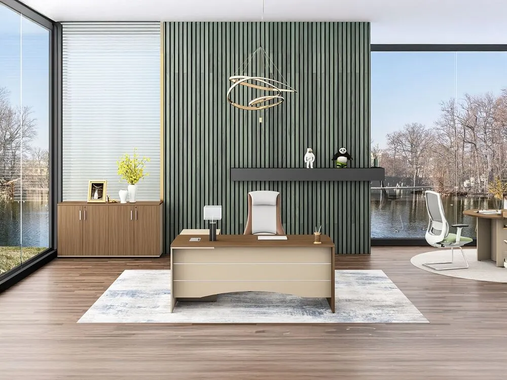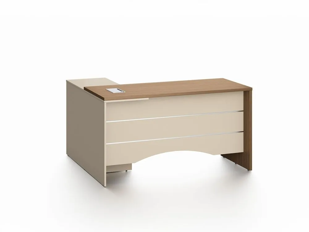 تم تصنيع المكتب باستخدام لوح خشبي صديق للبيئة مع تشطيب ميلامين لضمان مقاومة الخدوش والتآكل. يتميز المكتب بحواف بي في سي متينة بسُمك 2 ملم على السطح العلوي و1.2 ملم على الجوانب. السطح العلوي بسمك 25 ملم يمنح المكتب متانة فائقة تجعله مثاليًا للاستخدام اليومي المكثف.