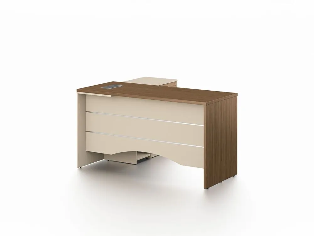 وحدات تخزين مرنة: يضم درجًا مزودًا بقفل ومقبض من الألمنيوم، بالإضافة إلى رفوف جانبية لتخزين الملفات والمستلزمات الأخرى. منزلقات الأدراج ثلاثية التحمل تضمن حركة سلسة ومريحة.