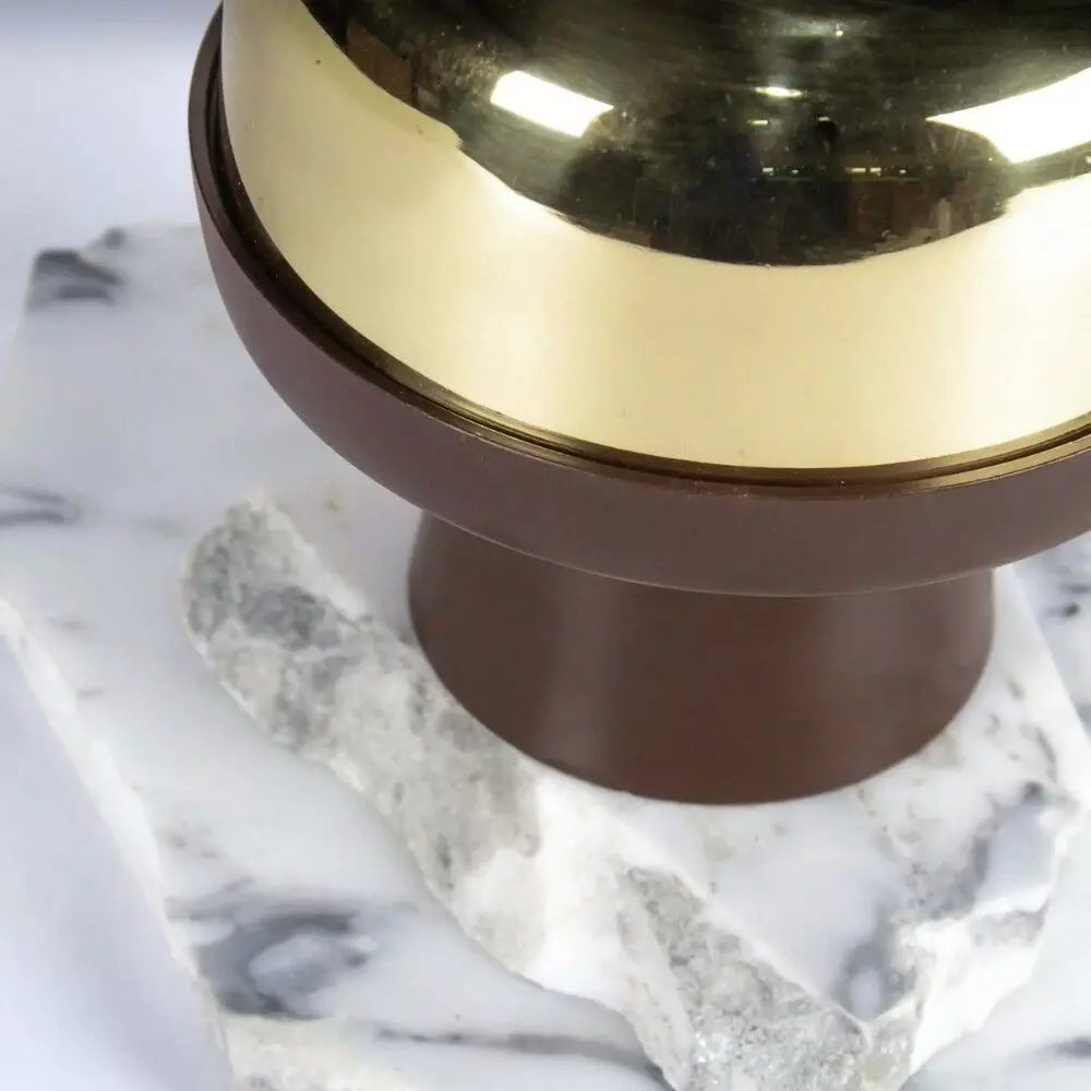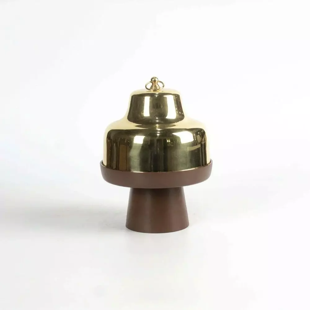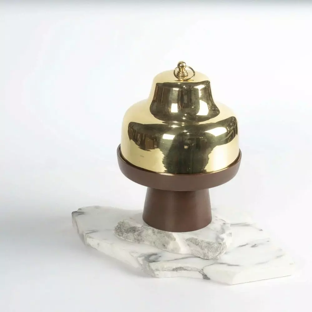 صُنع هذا الطبق الكلاسيكي بقاعدة من الألمنيوم المطلي وغطاء من الفولاذ المطلي بالنحاس، مستوحى من العناصر التقليدية لمحلات الحلويات والجيلاتو، محوّلًا إلى قطعة منزلية بألوان عصرية وأشكال مبهجة مع لمسة تقليدية من النحاس.