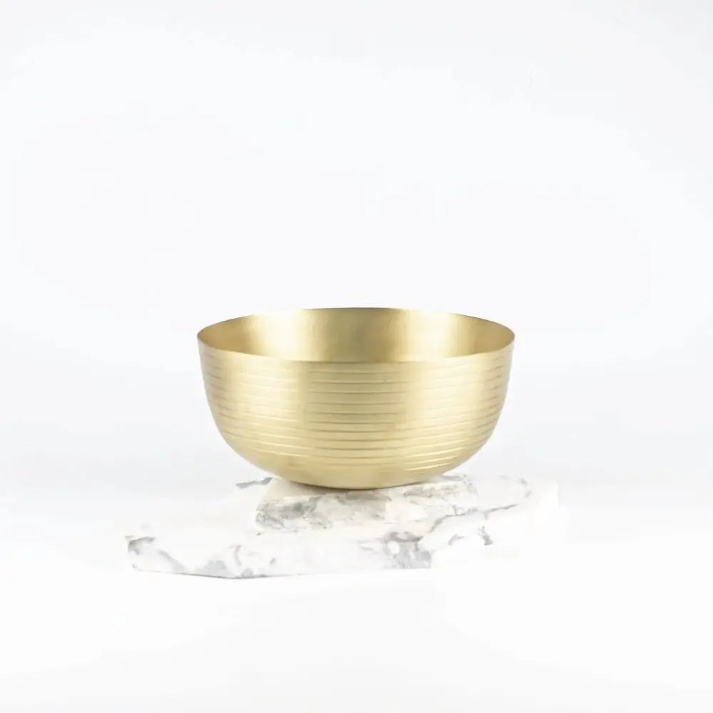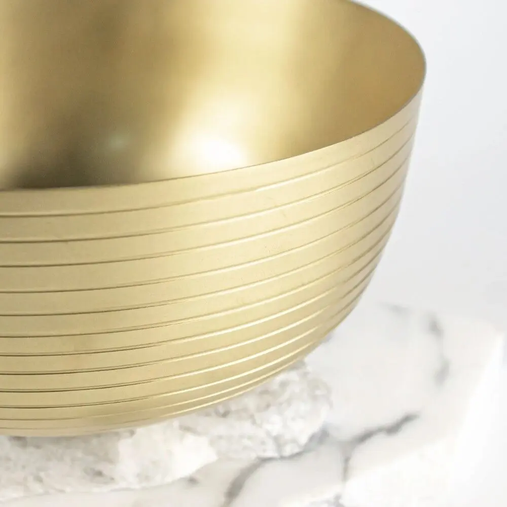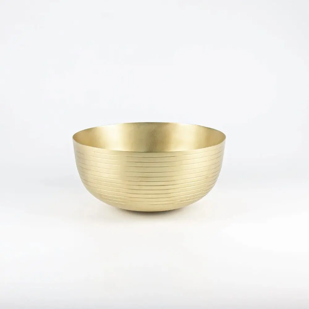 وعاء أنيق مصنوع من النحاس بتشطيب نحاسي غير لامع، يتميز بتصميم دائري مخطط يمنحه طابعًا عصريًا وراقيًا. يضيف لمسة دافئة إلى غرفة المعيشة أو المطبخ، ويُعد مثاليًا للاستخدام كقطعة ديكور أو لعرض وتقديم مختلف العناصر بأسلوب أنيق. كما يشكّل خيارًا رائعًا للإهداء في المناسبات مثل حفلات الزفاف أو الانتقال إلى منزل جديد، بفضل تصميمه المتوازن وحجمه العملي المناسب لمختلف المساحات.