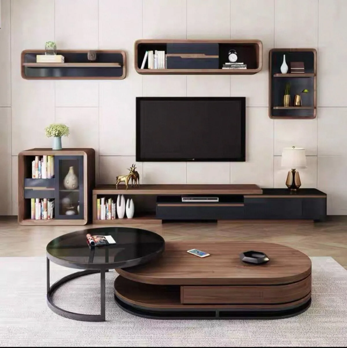 • طاولة قهوة بتصميم أنيق مكونة من جزئين قابلين للفصل متعددي الاستخدامات.