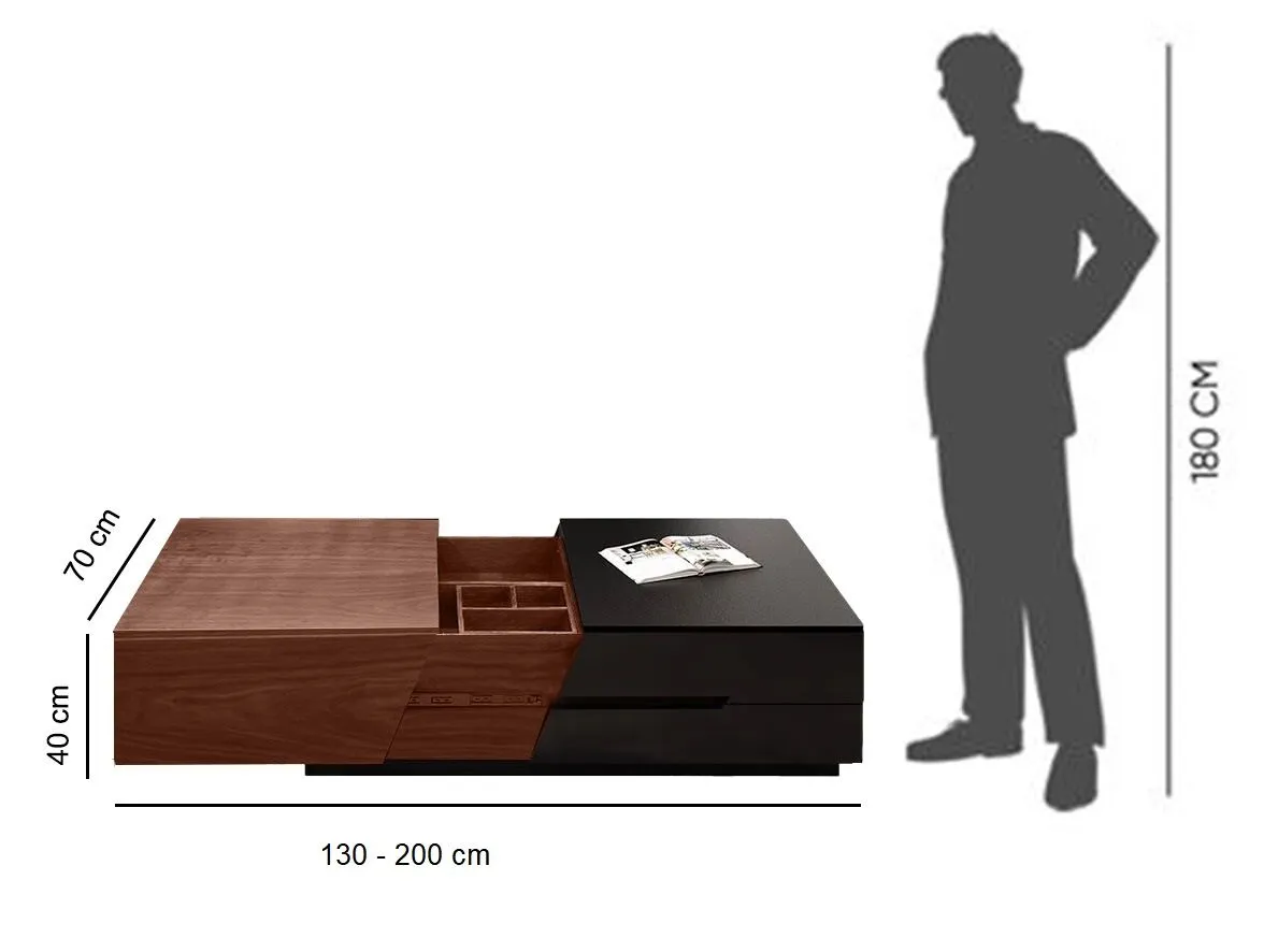 • الطاولة قابلة للسحب من احد الجهتين ليظهر خانات تخزين يمنحها خصائص تخزينية لتوضيب الكتب والمجلات والمقتنيات المختلفة التي تحتاجها في الحياة اليومية.